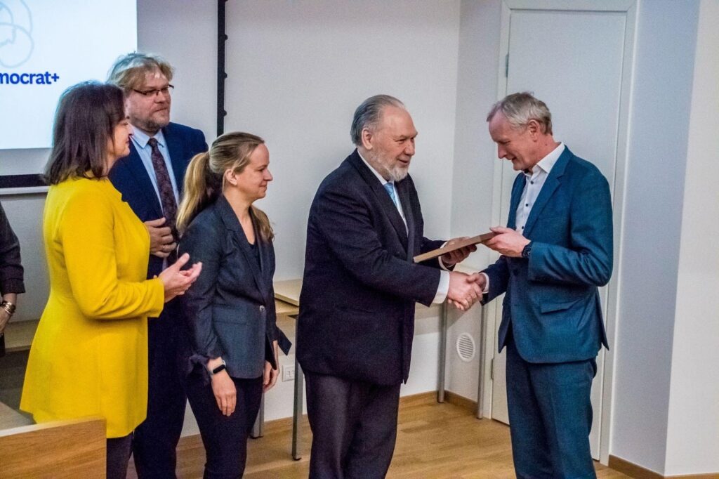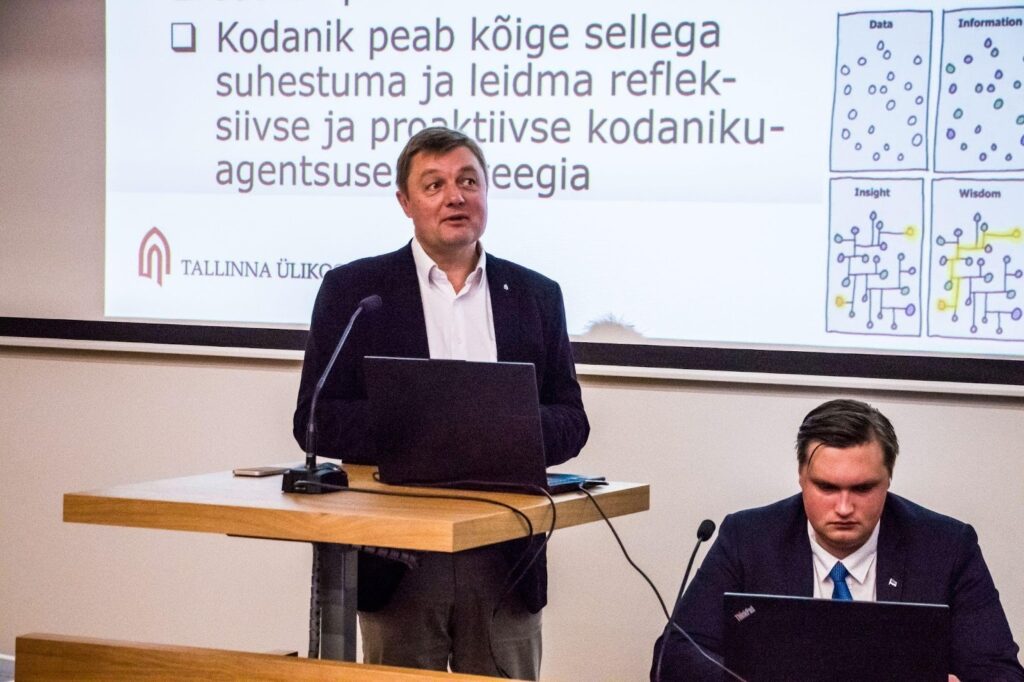 Leif Kalev, Tallinna Ülikool ühiskonnateaduste instituudi politoloogia professor esitas ülevaate, mis käsitles ka DEMOCRAT+ projekti esialgseid tulemusi – lisaks esinejale osalesid selles ka Sulev Lääne, Meril Ümarik, Hanna-Liis Kaarlõp ja Maarja Hallik. Tegemist on kahe omavahel seotud uurimisprojektiga, mis käsitlevad kodanikuhariduse korraldamist nii Eesti kui laiemas Euroopa võrdluses. Eesti-keskne DEMOCRAT+ uurib intervjuude kaudu, kuidas koolid, omavalitsused, vabaühendused ja teised partnerid kodanikuharidust ühiselt kujundavad, millised praktikad toimivad ja kus on arenguruumi; paralleelselt annab Horizon Europe projekt laiemad võrdlused kuue riigi kogemusest. Arutelu taustaks tõsteti esile nüüdisdemokraatia pinged – ühiskondliku killustumise, polariseerumise ja tehnokratiseerumise kasv –, mis muudavad kodanikuhariduse üheks oluliseks hoovaks usalduse ja osalusvõimekuse hoidmisel. Rõhutati, et kodanikupädevused, näiteks – osalusvõimekus, aruteluoskus, kriitiline mõtlemine ja demokraatlik enesekohasus – ei kujune ainult klassiruumis, vaid vajavad päris kogemust ja kokkupuudet avaliku võimu, sh kohaliku omavalitsuse esindajatega. Uuringutest joonistus välja, et kestlik koostöö tekib seal, kus rollid ja vastutus on selged, osaluskanalid on kokku lepitud ning formaal- ja mitteformaalharidus on võrgustikuna teadlikult ühendatud. Järgmiste sammudena plaanitakse Eestis jätkata uue Tallinna Ülikooli FUR projektiga “Demokraatliku kodanikuhariduse jätkusuutlik korraldamine ja koostöö (DEKO)”, sh „elava labori“ lähenemisega ning Euroopa tasandil iCivic-projektiga, et koos partneritega arendada kodanikuhariduse lahendusi, pöörates tähelepanu ka meediakirjaoskusele ja infomüra mõjule.